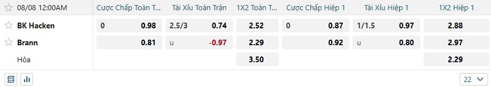 Tip kèo Châu Á full trận Hacken vs Brann