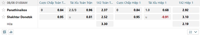 Tip kèo Châu Á hiệp 1 Panathinaikos vs Shakhtar Donetsk