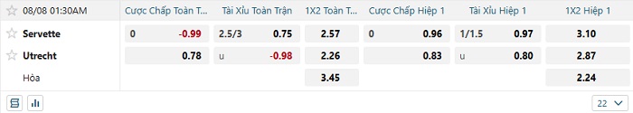 • Dự đoán tỷ số hiệp 1: Servette 0 – 0 Utrecht