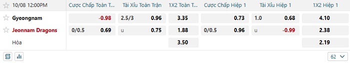 Tip kèo Châu Á hiệp 1 Gyeongnam vs Jeonnam Dragons
