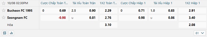 Tip kèo Châu Á hiệp 1 Bucheon FC vs Seongnam FC
