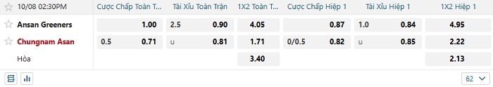 Tip kèo Châu Á full trận Ansan Greeners vs Chungnam Asan