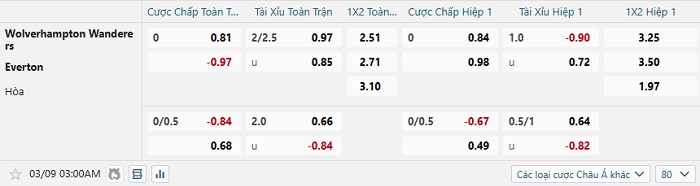 Tip kèo Châu Á hiệp 1 Wolves vs Everton