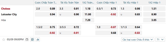 Tip kèo Châu Á full trận Chelsea vs Leicester