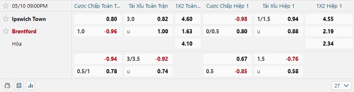 Tip kèo Châu Á hiệp 1 Ipswich vs Brentford