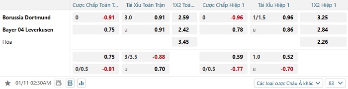 Tip kèo Châu Á hiệp 1 Dortmund vs Bayer Leverkusen
