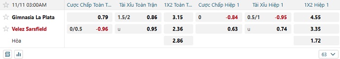 Tip kèo Châu Á hiệp 1 Gimnasia vs Velez Sarsfield