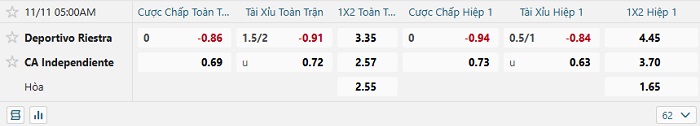 Tip kèo Châu Á hiệp 1 Deportivo Riestra vs Independiente