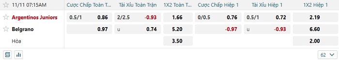 Tip kèo Châu Á hiệp 1 Argentinos Juniors vs Belgrano