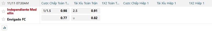 Tip kèo Châu Á hiệp 1 Independiente Medellin vs Envigado