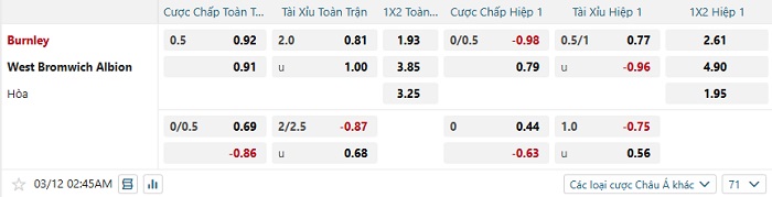 Tip kèo Châu Á hiệp 1 Burnley vs West Brom