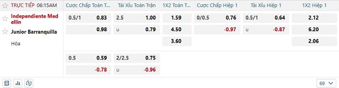 Tip kèo Châu Á full trận Independiente Medellin vs Junior Barranquilla