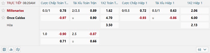 Tip kèo Châu Á full trận Millonarios vs Once Caldas