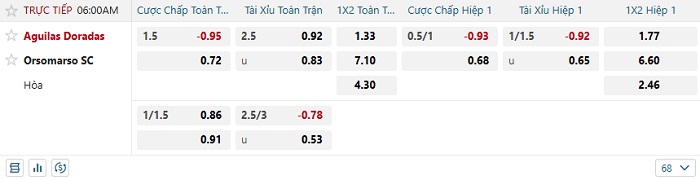 Tip kèo Châu Á hiệp 1 Agullas Doradas vs Orsomarso