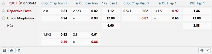 - Dự đoán tỷ số hiệp 1: Deportivo Pasto 2 – 0 Unlon Magdalena