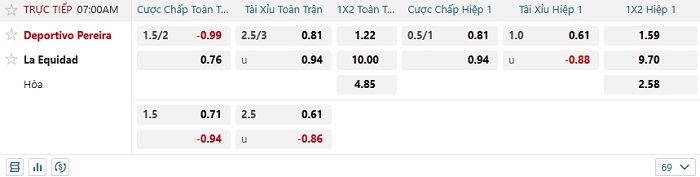 Tip kèo Châu Á hiệp 1 Deportivo Pereira vs La Equidad