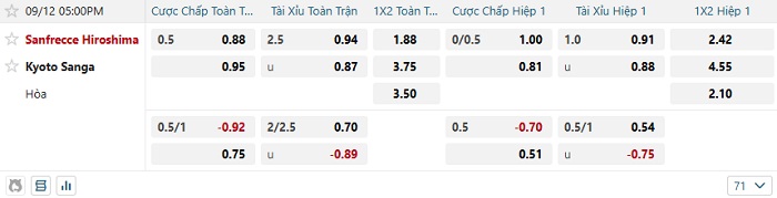Tip kèo Châu Á hiệp 1 San. Hiroshima vs Kyoto Sanga