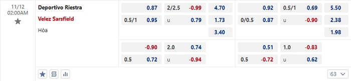 Tip kèo Châu Á full trận Riestra vs Velez Sarsfield