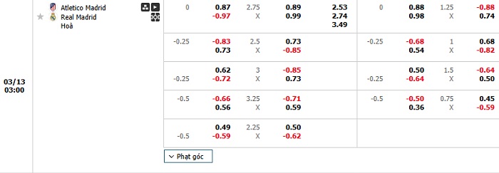 Tip kèo Châu Á full trận Atletico Madrid vs Real Madrid