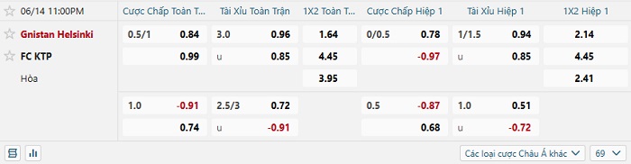 Tip kèo Châu Á hiệp 1 Gnistan Helsinki vs FC KTP