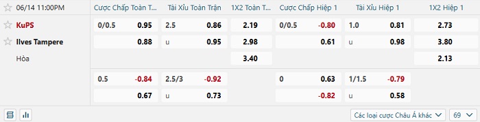 - Dự đoán tỷ số hiệp 1: KuPS 1 – 0 Ilves Tampere