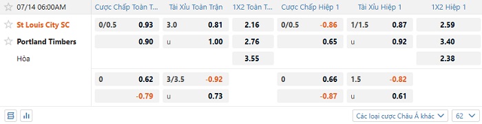 Tip kèo Châu Á full trận St Louis City vs Portland Timbers
