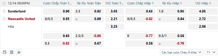 - Dự đoán tỷ số hiệp 1: Sunderland 0 – 0 Newcastle