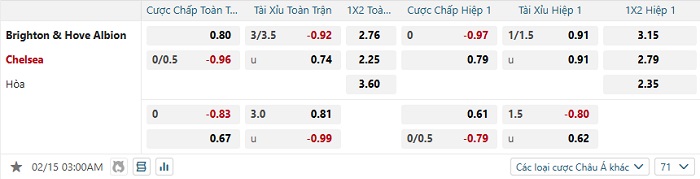 Tip kèo Châu Á full trận Brighton vs Chelsea