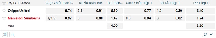 Tip kèo Châu Á hiệp 1 Chippa United vs Mamelodi Sundowns