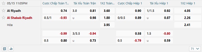 • Tip kèo cá cược Châu Á hiệp 1: Chọn Al Riyadh +1/4