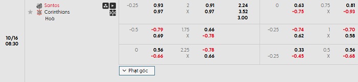 Tip kèo Châu Á full trận Santos vs Corinthians