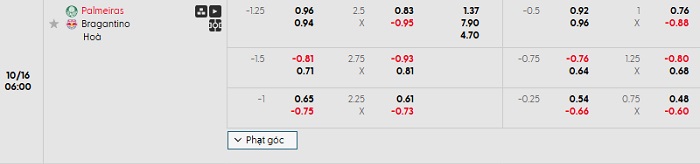 Tip kèo Châu Á full trận Palmeiras vs Bragantino