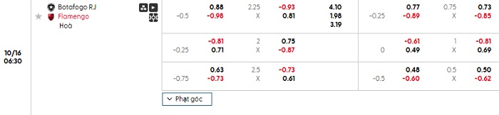Tip kèo Châu Á full trận Botafogo vs Flamengo
