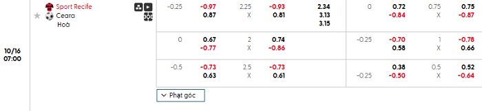 Tip kèo Châu Á full trận Sport Recife vs Ceara