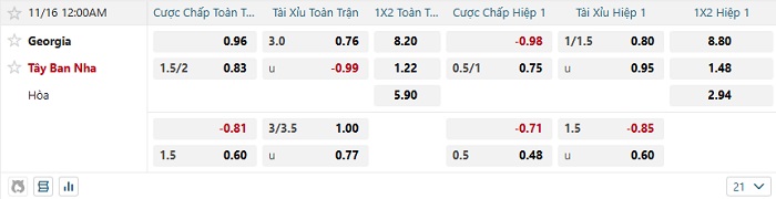 Tip kèo Châu Á hiệp 1 Georgia vs Tây Ban Nha