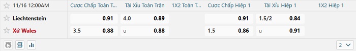 Tip kèo Châu Á hiệp 1 Liechtenstein vs Wales