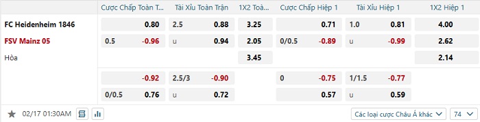 Tip kèo Châu Á full trận Heidenheim vs Mainz