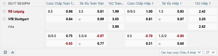 Tip kèo Châu Á full trận Leipzig vs Stuttgart