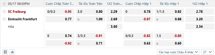 Tip kèo Châu Á hiệp 1 Freiburg vs Frankfurt