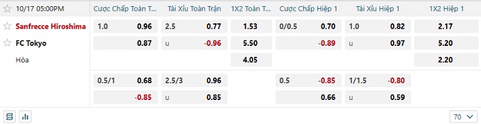 Tip kèo Châu Á hiệp 1 Sanfreece Hiroshima vs FC Tokyo