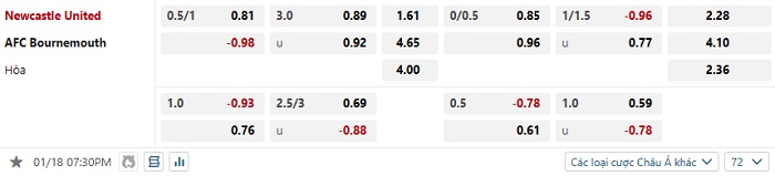 Tip kèo Châu Á full trận Newcastle vs Bournemouth