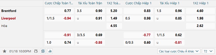 Tip kèo Châu Á full trận Brentford vs Liverpool