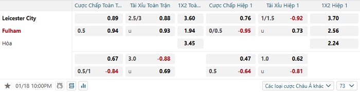 Tip kèo Châu Á full trận Leicester vs Fulham