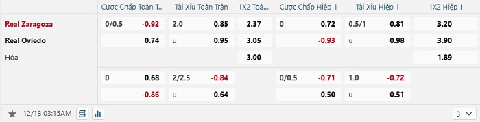 Tip kèo Châu Á full trận Zaragoza vs Real Oviedo
