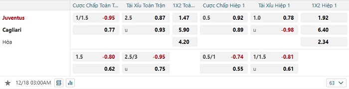 Tip kèo Châu Á full trận Juventus vs Cagliari