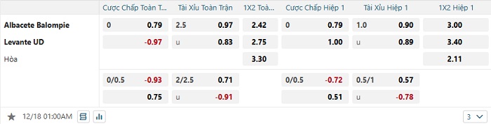 Tip kèo Châu Á full trận Albacete vs Levante