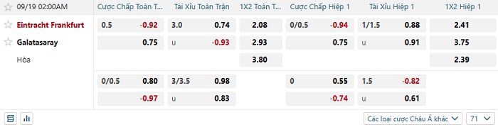 Tip kèo Châu Á full trận Frankfurt vs Galatasaray