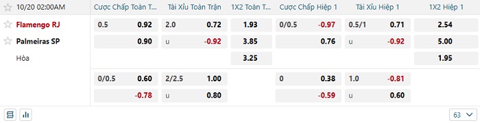 Tip kèo Châu Á hiệp 1 Flamengo vs Palmeiras