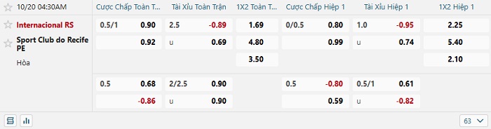 Tip kèo Châu Á full trận Internacional vs Sport Recife