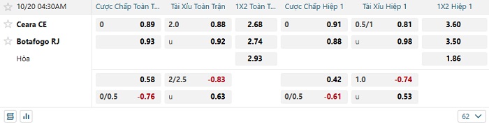 Tip kèo Châu Á hiệp 1 Ceara vs Botafogo